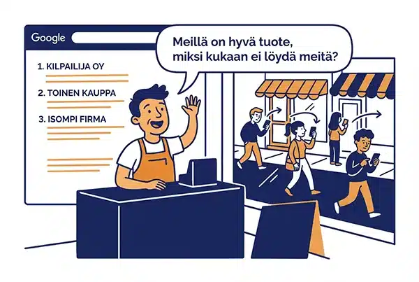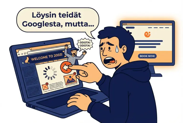 Jokainen viikko ilman toimivaa verkkoläsnäoloa on viikko, jolloin asiakas löytää kilpailijan ennen sinua. Ensivaikutelma syntyy verkossa — ja jos sitä ei ole, sitä ei synny.